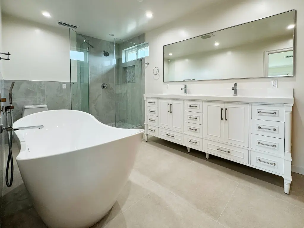 Let’s look at bathrooms as an example. A bathroom renovation might include new fixtures, fresh tile, updated lighting, and a coat of paint. A bathroom remodel could move the shower to a different wall or completely change the layout.